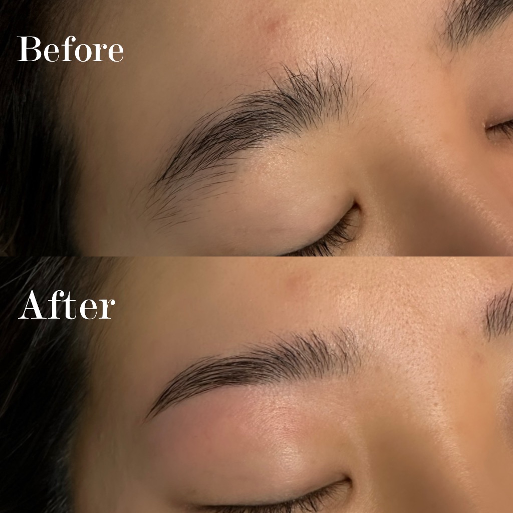 ハリウッドブロウリフトとワックス脱毛で毛流れを整えて自然だけど整ってる眉毛の土台を作成します。